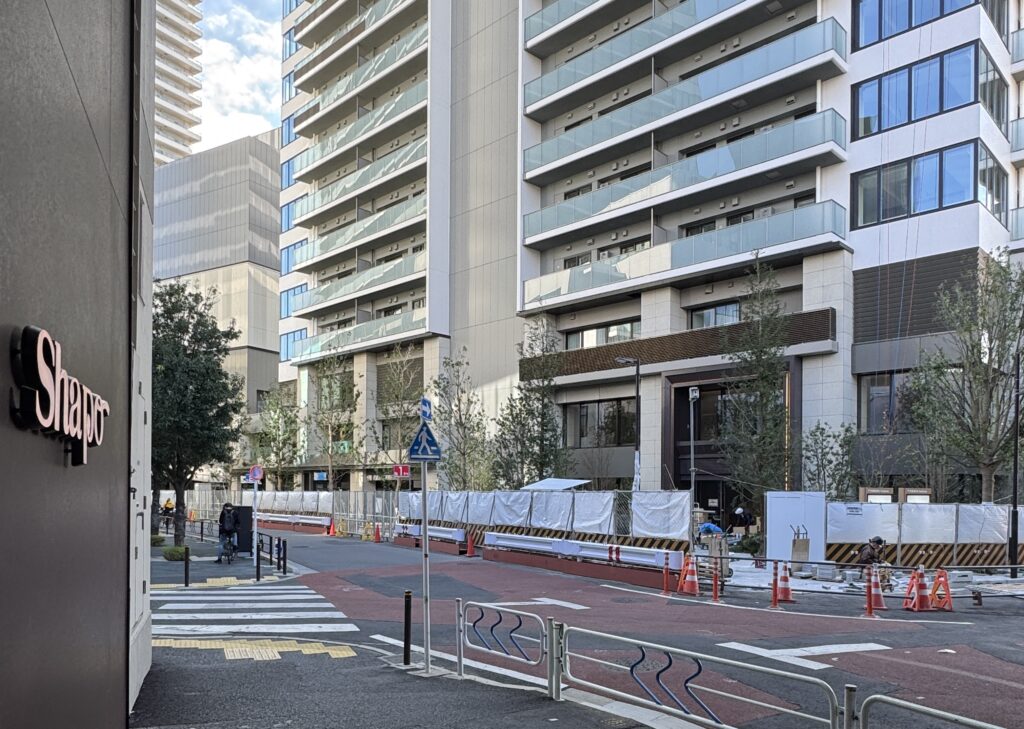 外構の整備が最終段階に入っていました。あらためて、商住一体開発の素晴らしいランドプランに感動しました!まもなく内見が始まりますね。