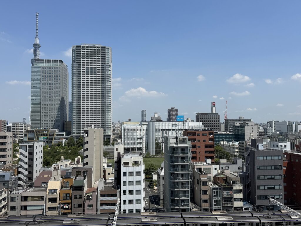 敷地の北側は総武線の線路のため、北向き住戸は100m近い離隔がある開放感。高層階にいたっては何百メートルも先まで開けた住環境になっています。音については実際に体感していないので控えておきます。
