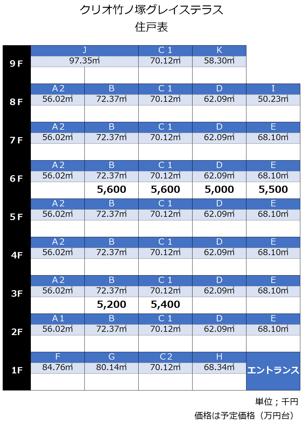 住戸表です。