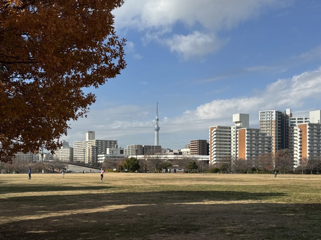 広大な大島小松川公園(徒歩7分)は、ただの公園ではありません。凧揚げをしたり、テントを張ったり、BBQをしたり、子供にとっては毎週末、ここに行くことが大きなイベントになります。