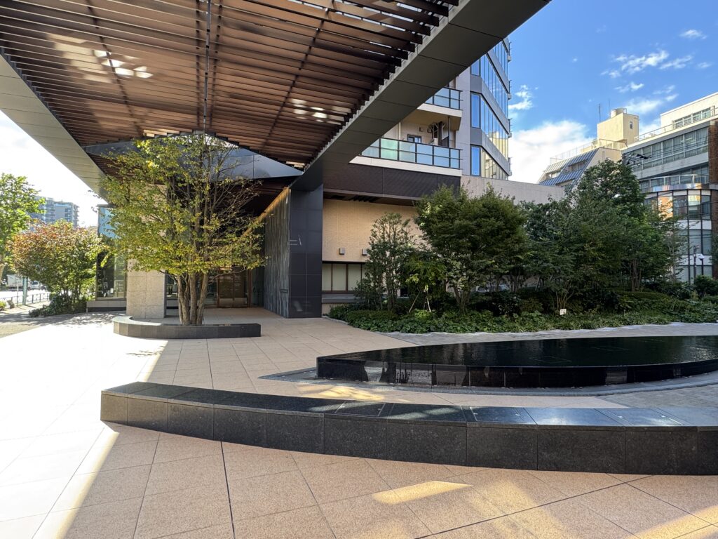 ランドプランは、ゆったりした公開空地が特徴で、豊かな植栽や意匠に凝った水盤を設けるなど雰囲気が良いスペースになっています。