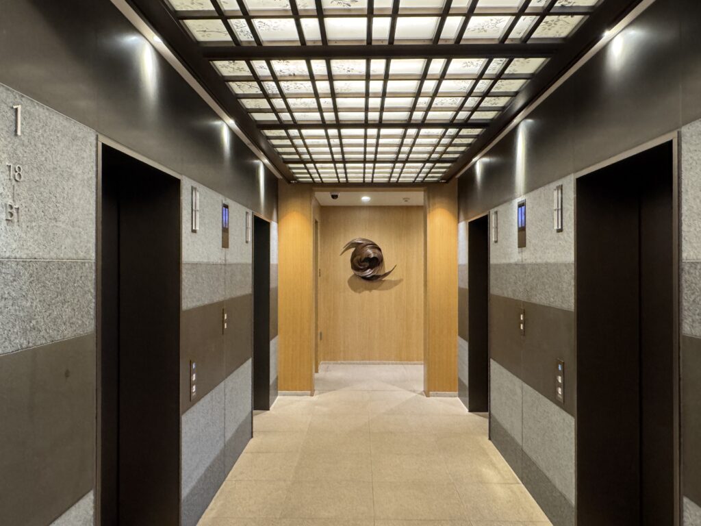 エレベーターは高層階用、低層階用に分かれています。18階は両方利用可能。