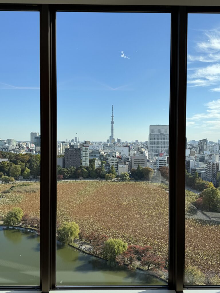都心の高層ビル群を満喫し、「パークビューラウンジ」では、不忍池や東京スカイツリーを高い位置から眺めながら会話が弾みました。